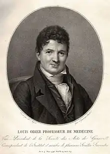Louis Jean Odier (March 17, 1748 – April 14, 1817, Geneva) was a Genevan and then Swiss physician, medical campaigner and advisor; he was also a translator and publisher of medical texts, particularly from English. He was a major figure in medicine in 18th-century Europe because of his promotion of vaccination against smallpox and more broadly his lobbying for medical funds and usage of data from historical medical records, relating them to probability in life expectancy and subsequent advice for economic planning.[1]