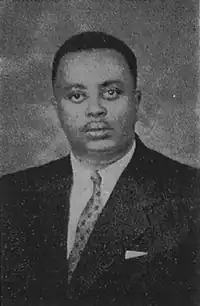 Louis Rwagasore was born on 10 January 1932 in Gitega, Ruanda-Urundi, to Mwami (king) of Urundi Mwambutsa IV and Thérèse Kanyonga.[2] Ethnically, he was a member of the Bezi clan of the Ganwa,[3] a group of people of aristocratic status often associated with the Tutsis.[4] The frequency of matrimonial alliances among the Ganwa gave Rwagasore familial links to numerous chiefs in Urundi.[5] Mwambutsa and Kanyonga afterward had two daughters, Rosa Paula Iribagiza and Régine Kanyange, before divorcing in 1940. Mwambutsa remarried in 1946 and fathered a second son, Charles Ndizeye.[6] Rwagasore began attending school at the age of seven, going to Catholic institutions in Bukeye, Kanyinya, and Gitega. In 1945 Rwagasore enrolled in the Groupe Scolaire d'Astrida. He studied there for six years,[2] and in 1951 went to Antwerp to study at the University Institute of Overseas Territories (Institut universitaire des Territoires d'Outre-Mer).[7] He was a poor student,[2] but after one year at the institute he enrolled at the Catholic University of Leuven, where after three years of study he earned a degree in political economy.[5] Rwagasore returned to Urundi in December 1956.[5] In April 1957 he was hired by the Belgian administration to oversee studies of economic, agricultural, and administrative concerns.[8] On 12 September 1959 he married a Hutu woman, Marie-Rose Ntamikevyo, in Usumbura.[9] They had two daughters, both of whom died in infancy.[10]