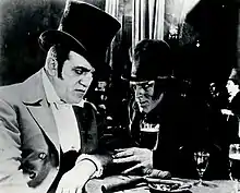 In 1914, on the advice of Lionel Barrymore and John Barrymore, Wolheim entered films. Both brothers also invited him to appear in the 1919 play The Jest in which the Barrymores co-starred.[6] He would appear in at least five films with Lionel Barrymore including a serial and four films with John Barrymore, The Test of Honor (1919), Dr Jekyll & Mr Hyde (1920), Sherlock Holmes (1922) and Tempest (1928). Wolheim appeared in two silent films with their sister Ethel Barrymore. Wolheim's fearsome visage almost immediately typecast him in roles as gangsters, executioners (as in D. W. Griffith's Orphans of the Storm) or prisoners. Towards the end of the 1920s, he occasionally broke out of these stereotypes and played a comic Russian officer in Tempest and a rambunctious Sergeant in Howard Hughes's Two Arabian Knights. He also played a Chaneyesque gangster in Hughes's splendidly photographed The Racket, a lost film for over 70 years recently rediscovered.