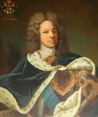 His father, Claude, the first duke, was a tall and taciturn man who was keen on hunting. Louis de Saint-Simon was the opposite; garrulous, much shorter, and preferring life indoors. His father had been a favourite hunting companion of Louis XIII. King Louis had appointed his father as Master of Wolfhounds before granting him a dukedom in 1635 at a relatively young age; he was 68 when Louis was born.[2] Saint-Simon ranked thirteenth in the order of precedence among France's eighteen dukes.[3]