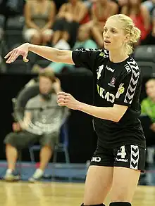 The last club she played for was Aalborg DH and previously she played for Team Esbjerg. She participated in the World Championships in 2005 and 2009. She played 97 national games and scored 205 with the Danish national team.