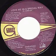 "Love Me In a Special Way" is a single by DeBarge, released on November 20, 1983. It was the second and final single from their third studio album, In a Special Way on the Gordy label.
