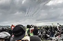 The event take place at the military airfield near Zurich. The Highlights besides the ride out are a popular motorcycle stunt show and the Patrouille Suisse.[5] Switzerland's elite fighter jet squadron, which is also part of the event. The event is very popular among many fans and is supported and attended by many prominent visitors. Regular guests include, for example, Susanne Klee, Peter Sauber (F1 team boss), the band Gotthard, Michel von Tell, Freddy Nock, Marco "Büxi" Büchel, and Grisu Grizzly.[6][7]
