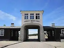 During the war, the Germans established the Gross-Rosen concentration camp with around 100 subcamps in the region, in which around 125,000 people of various nationalities, among them mostly Jews, Poles and citizens of the Soviet Union, were imprisoned, and around 40,000 died.[14] Also several German prisoner-of-war camps, including Stalag VIII-A, Stalag VIII-C, Stalag VIII-E, Stalag Luft III, Oflag VIII-A, Oflag VIII-B,[15] Oflag VIII-C, Oflag VIII-F, with numerous forced labour subcamps were located in the region, as well as various subcamps of the Stalag VIII-B/344 POW camp. POWs of various nationalities were held in those camps, including Poles, Frenchmen, Belgians, Britons, Italians, Canadians, Americans, Greeks, Yugoslavians, Russians, Australians, New Zealanders, South Africans, Norwegians, Lithuanians, Slovaks, etc. There were also several Nazi prisons, other forced labour camps and a camp for kidnapped Polish children up to 5 years of age, who were deemed "racially worthless" in Wąsosz, where many died.[16] The Project Riese construction project, which cost the lives of many forced laborers of various nationalities, was conducted by Germany in the region.