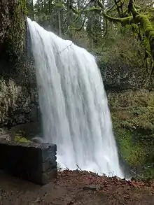 Lower South Falls, is a waterfall located in the Silver Falls State Park at the east end of the city of Salem, in Marion County, in the U.S. state of Oregon. It is located in a privileged area on the west foothills where Mount Hood National Forest meets with the Middle Santiam Wilderness. Several prominent waterfalls are located in the Park along Trail of Ten Falls: South Falls, Drake Falls, Middle North Falls, and Winter Falls—among others.