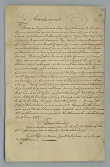 - ↑ Bradford, William (March 19, 1765). "Extract of a letter from Carlisle". Pennsylvania Journal and Weekly Advertiser.