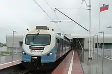 Lublin Airport was accessible by rail, a railway station inside the airport terminal built at the end of a dedicated 3.7 kilometre line. The connection to Lublin's main railway station was provided by EMU (Electric Multiple Unit), EN57AL series 3000. The journey took approximately 15 minutes from Lublin Central Station.[23] With patronage having fallen to below 50 passengers a day, it was replaced by a bus service in November 2021.[24]