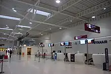 Lublin Airport (Port Lotniczy Lublin) (IATA: LUZ, ICAO: EPLB) is an airport in Poland serving Lublin and the surrounding region. The site is located about 10 km (6.2 miles) east of central Lublin, adjacent to the town of Świdnik. The airport has a 2520 × (45 + 2 × 7.5) m runway (8,270 × 200 ft), and the terminal facilities are capable of handling four Boeing 737-800 class aircraft simultaneously.[3] Construction began in the fall of 2010[4] and the official opening took place on December 17, 2012.[5][6] The new airport replaced the grass airstrip (1,200 × 50 m or 1,312 × 55 yd), which had served the PZL-Świdnik helicopter factory, and was known as Świdnik Airport with the ICAO identifier EPSW.