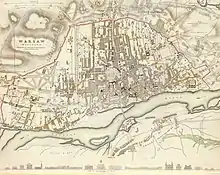 Lubomirski Ramparts (Polish: Okopy Lubomirskiego) was a 12 kilometre-long earthwork surrounding the city of Warsaw in late 18th and 19th century. A line of earthworks with a dry moat separated the city of Warsaw from the countryside. Erected by Stanisław Lubomirski, the then Grand Marshal of the Crown, in 1770, it was intended as a sanitary measure to stop plague epidemics ravaging Central Europe at that time. Travellers were allowed to enter the city only through several breaches in the ramparts dubbed rogatki. The term later entered the Polish language to signify any kind of toll house.