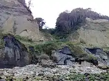 The Chine is at the eastern end of the Isle of Wight Undercliff landslip. A small fishing community existed at the foot of the Chine until 1910, when the settlement was destroyed by a landslip.[1] There were previously steps down to the beach from the clifftop coastal path, but these are now (as of 2017) closed due to erosion and landslips.