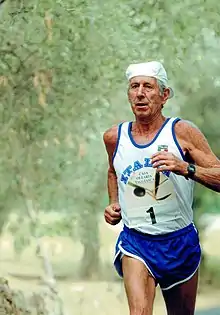 In the ensuing years Acquarone won numerous international races, the 1973 International Cross Country meet in Monte Carlo, the Vallecrosia Marathon and the Marseille Marathon. From 1977 to 1980, tendonitis set in and during the long recovery, Acquarone took to cycling, racing in Italy and France. He returned to racing in 1981 at age 50 where he first started setting what has become 7 world records and an additional six European records.[2][3] He has held the M50, M60 and M75 world records for 3000 metres; the M50 and M60 world record for the 10000 metres; and the M60 and M75 world record for the marathon.
