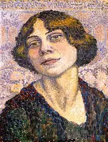 Lucie Cousturier first exhibited at the Salon des Artistes Indépendants in 1901, and was to exhibit three to eight oils there every year until 1920.[3] She exhibited at other exhibitions in Brussels and Berlin, and at the end of 1906 gave her first solo exhibition in Paris.[3] By 1907 she had a perfect mastery of technique and color. In her later paintings, particularly outdoors scenes, her style became increasingly fluid and free, with warm and lively colors.[5] In 1911, Lucie began her writing career by writing articles and monographs about the major members of the emerging Neo-Impressionist movement. She is credited for being the first specialist writer of the movement.[6]