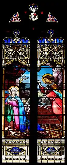 Stained glass window (1884) by Lucien-Leopold Lobin, depicting the Annunciation. Church of Saint-André, Angoulême, France