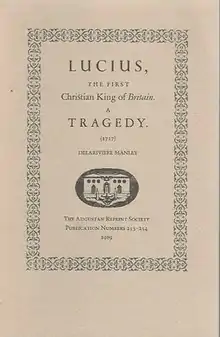 Lucius or Lucius, the First Christian King of Britain is a 1717 tragedy by the British writer Delarivier Manley.[1] It is based on the life of Lucius of Britain, the second century ruler of Britain traditionally considered to have introduced Christianity to Britain. It was Manley's final play to be staged.