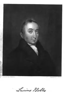 Lucius Bolles, D.D., S.T.D. (September 25, 1779 – January 5, 1844), sixth child of Rev. David Bolles, was born at Ashford, Connecticut.[1] He was an 1801 graduate of Brown University and a student of theology three years with Samuel Stillman, of Boston, Massachusetts. He served more than 22 years as pastor of the First Baptist Church of Salem, Massachusetts, and Corresponding Secretary of the Baptist Board of Foreign Missions fourteen years.[2] He was one of the founders of Newton Theological Institution.[3]