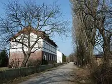The station complex consists of three independent juxtaposed stations. While they were generally all called Uckro in the public timetables, the in-house names of the stations of the DUE and the NLE were Uckro West and Uckro Süd (south). The installations of the Berlin-Dresden railway are somewhat above the level of the surrounding terrain. The tracks consist of two through tracks and two outside platform tracks with outside platforms. A station tunnel connects the two platforms. The station building is located east of the tracks and connects to a paved station forecourt. On the other side of the forecourt is the station building of the Lower Lusatian Railway and its tracks lay behind station building. The installations of the Dahme-Uckro Railway were on the other side of the main line. Its tracks have been dismantled. The whole "Uckro station complex", consisting of the "station building of the Berlin-Dresden railway, including of the station forecourt, the station building of Lower Lusatian Railway and the station building of the Dahme–Uckro railway, including its toilet block" are a heritage-listed site.[11] The complex also includes a "residential house for railway staff with a stable building" to the south of the station forecourt.