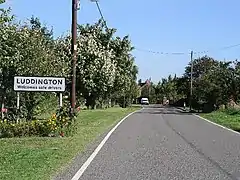 Luddington is situated at the northern edge of North Lincolnshire, on low-lying land which abuts the River Trent to the east. The B1392 road passes through the village centre, heading east to the bank of the Trent, and then turning south along the bank, and in the other direction, heading south-west and then west to reach Eastoft. A minor road heads north and then north-east to reach Garthorpe and Fockerby, once on opposite banks of the River Don, but since the diversion of the river as part of the drainage of Hatfield Chase, effectively one community. Just to the north of the village, a track leaves the road, providing a route to Haldenby Grange, near to which there was a railway station until 1965. The parish church is in fields to the north-east of the village centre.[7]