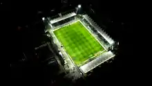 On 12 August 2017, the club inaugurated the newly modernized east stand before a league match against Vereya Stara Zagora.[9] The stand, which was built in just five months, added 3,500 seats to the stadium's capacity, bringing the total number up to 9,000 seats.[7] This allowed Ludogorets Arena to host Champions League and Europa League group stage matches for the first time ever, starting from the 2017–18 season onwards. Club officials later announced that they will build a copy of the 'Moți' stand on the north end next, before proceeding with construction of the main one.[7]