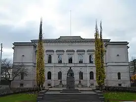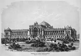 The following year, he entered what would become his most important competition; designing a new building for the Reichstag, in Berlin. Over one-hundred architects submitted entries. His design was awarded first prize. Due to unresolved political and financial issues, construction was postponed indefinitely. Some of those involved may have been uncomfortable with his foreign origin.[1] In any event, he put the matter out of his mind and went on to other competitions; winning one for the new headquarters of the Bank of Finland in 1876. In the meantime, he also became a member of the Prussian Academy (1874), and an honorary member of the Amsterdam Building Academy (1875).