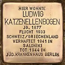 In Liebenwalde, commemorative stumbling blocks were laid for Ludwig Katzenellenbogen and other family members by the artist Gunter Demnig.