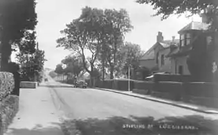 The historical village houses are displayed on the north bound side of Stirling Road in the 1864 Ordnance Survey map.[8] People used to go on holiday in the village and there is a postcard looking south, showing the village possibly from the 1930s. The Luggie Bridge, just to the north of the village, is a stone arch that now forms part of the foot way north out of the village.