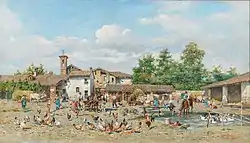 Enrico Bartezago (Lugano,[1] 1820 – c. 1905)[2] was an Italian painter, active in Milan, painting genre scenes, Portraits, and watercolors. In the exhibition of Paris of 1878, he displayed L' aia d' una fattoria lombarda. At the Mostra di Venezia of 1887, he exhibited La scimmia. Other works include Mercato a Varallo and Nemici. In 1891–92, he won the Mylius prize from the Academy at Milan for genre painting for his Alpine Pennine.[3][4]