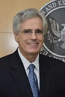 He was the Democratic commissioner of the U.S. Securities and Exchange Commission (SEC) from July 31, 2008, until December 2015 (after his term expired).[5][6] He had been appointed by U.S. President George W. Bush on March 31, 2008, and confirmed by the U.S. Senate on June 27, 2008; he was sworn in as a commissioner on July 31, 2008. He was reappointed by President Barack Obama in 2011. At the time his tenure ended he was the eight longest-serving Commissioner in SEC history and was one of only three Commissioners to have been nominated by two U.S. Presidents from two different political parties.[7]
