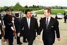 Minister Ramírez with his counterpart, United States Secretary of Defense William Cohen during an official visit to Washington, D.C. in 2000.