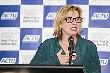 ![]() Batty speaking at the Women's Lunch on Day One of the 2015 ACTU Congress | |