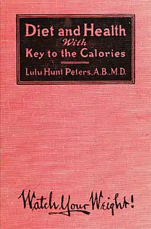 Lulu Hunt Peters (1873–1930) was an American medical doctor and writer who wrote a featured newspaper column entitled Diet and Health, which she followed up with a best-selling book, Diet & Health: With Key to the Calories. She was the first person to widely popularize the concept of counting calories as a method of weight loss.[1][2] It was also the first weight-loss book to become a bestseller.[3]