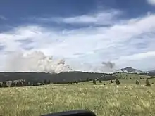 By June 15, the GNA Brooklyn Bridge Timber Sale Area was closed.[5] The fire was reported at 15 percent contained, with crews focusing on building fire lines on the east and west sides of the fire, heading north.[6] The fire footprint was re-evaluated to be an estimated 1,100 acres (445 ha) by June 16. Rain and high humidity helped quell the fire, with a winter storm warning being put in place for June 17.[7] That day, pre-evacuation warnings were removed for all prior areas.[8]