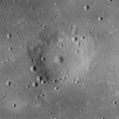 Oblique view of lunar dome near Messier in Mare Fecunditatis. Note dark 'halo' deposits. The crater left of center is unrelated (formed after the dome).