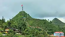 Lũng Cú Flag Tower (Vietnamese: Cột cờ Lũng Cú) is a monument in northern Vietnam. It is located in Lũng Cú commune of Dong Van district in Ha Giang province. The monument consists of a 30-metre tall (98 ft) tower on the summit of Lũng Cú Peak (over 1,400 metres (4,600 ft) above sea level). The tower is topped with a large Vietnamese flag. The monument was built to mark the northernmost point in Vietnam, although the farthest north point on the Chinese-Vietnamese border is actually located over 3.3 km (2.1 mi) farther north.