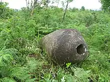 Lungzubels are not confined to a particular place but are spread out in all Biate inhabited areas in the southwestern part of Dima Hasao district and the adjoining state of Meghalaya across the Kangkalang (Kopili) river mainly in the Saipung Elaka, East Jaintia Hills district. Dr.B.Pakem, a renowned writer and former Vice-Chancellor of North Eastern Hill University also wrote that these round stones and hollow ground resemble those found in the nearby Sumer Elaka, between Umkyurpong and Kseh villages in Meghalaya. He believed that it might have been the sacrificial or dancing places of the Biates' forefathers in the past.[1] In Dima Hasao, the most well-known location is a small Biate village called Khobak, about 130 km from the district headquarters Haflong. Lungzubels are also found in some other areas albeit in small numbers. It is widely believed that these places may also have been inhabited by the Biates in olden days.