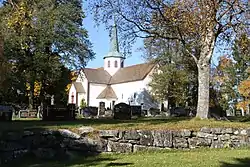 The medieval church now constitutes the choir of today's church. The medieval parts of the church have still not gone through restoration. On the outside the medieval part of the church has nine stone reliefs. These ornaments depict humans and animals, probably battling for human souls. The ornaments are located on the southern and eastbound walls and on the sacristy. [3]