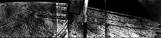 The final location of Lunokhod 1 was uncertain until 2010, as lunar laser ranging experiments had failed to detect a return signal from it since 1971. On March 17, 2010, Albert Abdrakhimov found both the lander and the rover[7] in Lunar Reconnaissance Orbiter image M114185541RC (Line 21977, Sample 3189).[8] In April 2010, the Apache Point Observatory Lunar Laser-ranging Operation (APOLLO) team from the University of California at San Diego used the LRO images to locate the rover closely enough for laser range (distance) measurements. On April 22, 2010, and days following, the team successfully measured the distance several times. The intersection of the spheres described by the measured distances then pinpoint the current location of Lunokhod 1 to within 1 meter.[9][10] APOLLO is now using Lunokhod 1's reflector for experiments, as they discovered, to their surprise, that it was returning much more light than other reflectors on the Moon. According to a NASA press release, APOLLO researcher Tom Murphy said, "We got about 2,000 photons from Lunokhod 1 on our first try. After almost 40 years of silence, this rover still has a lot to say."[11]