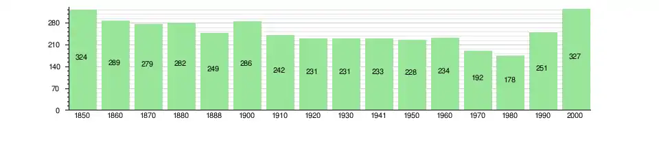 As of 2000, there were 133 private households in the municipality, and an average of 2.4 persons per household.[10] There were 41 households that consist of only one person and 8 households with five or more people. Out of a total of 137 households that answered this question, 29.9% were households made up of just one person and there was 1 adult who lived with their parents. Of the rest of the households, there are 35 married couples without children, 50 married couples with children There were 3 single parents with a child or children. There were 3 households that were made up of unrelated people and 4 households that were made up of some sort of institution or another collective housing.[11]