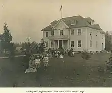 In 1865, Reverend Eric Norelius of Vasa Lutheran Church in Welch, Minnesota purchased ten acres of land near the site of the congregation for an orphanage with cropland to support operating costs. The congregation was caring for four orphaned children in the church basement and needed a formal home as they took in more children. This became Vasa Children's Home, Minnesota's first orphanage.[4] Norelius managed the home until 1876 when he transferred supervision to the Minnesota Conference of the Augustana Lutheran Synod.[5] After being rebuilt twice due to tornado and fire damage, the home moved to its present Red Wing, Minnesota location in 1926.