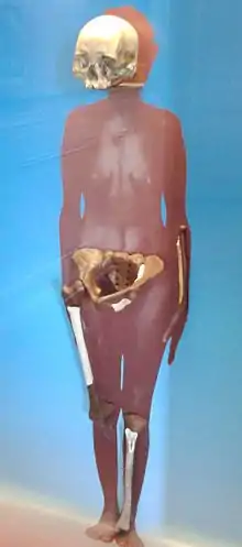 ![]() Luzia's remains as displayed at the National Museum of Brazil in Rio de Janeiro | |