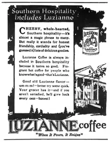 In the late 1890s, William B. Reily was operating a wholesale grocery company in Monroe, Louisiana. Noticing the high demand for coffee products, Reily decided to move south to New Orleans to start a business that would roast, grind, package, and distribute canned coffee. In December 1902, he started his coffee business, and the Luzianne brand was born.[2]