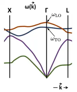 In condensed matter physics, the Lyddane–Sachs–Teller relation (or LST relation) determines the ratio of the natural frequency of longitudinal optic lattice vibrations (phonons) () of an ionic crystal to the natural frequency of the transverse optical lattice vibration () for long wavelengths (zero wavevector).[1][2][3][4][5] The ratio is that of the static permittivity to the permittivity for frequencies in the visible range .[6]