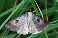 O. pastinum Tr. (= lusoria Hbn. nec L.) . Forewing pale luteous grey covered with dark vermiculations; the costa and terminal area brownish grey; inner line outwardly curved, greyish brown, often obscure; outer line dark edged with pale, outcurved above, indented on submedian fold, followed by a diffuse dark shade; the subterminal line hardly distinct; orbicular stigma a black dot; reniform a black lunule, its lower end produced outwards and followed by two black points; hindwing pale brownish grey, with an indistinct outer pale line; the form astragali Rmb., from Spain, is more densely covered with dark striae on the forewing, of which the terminal spots are hardly visible; on the other hand, dilutior Stgr., from the Kentei Mts., has paler, less marked, forewings; ab. decolor ab. nov. (68 f) is much paler and without any brown tinge: nearly a score of this form were taken in July and August 1901—1903 at Tarasp in the Engadine by Mr. Rothschild and Mr. Haktert; they may be identical with ab. dilutior Stgr. from Kentei. Larva pale yellowish grey, dotted with black, with a row of yellow spots in the middle and a row of small yellow spots on each side of the back; laterally with a broad white grey-mottled black-dotted stripe above, and beneath an orange stripe dotted with white and edged below with yellow; also a black stripe above the feet.[1] The wingspan is 37–42 mm. The length of the forewings is 18–21 mm.