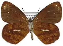 - Lymanopoda ferruginosa Butler, 1868 – rusty mountain satyr