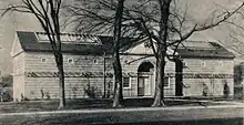 On August 6, 1921, the Lyme Art Association Gallery was unveiled.[35] The building measured 25'x88' with a wing 25'x32' and one high story.[36] The gallery was built in a T-shape, with trellises wrapping around the back of the structure, which were ready to collect the vines that were beginning to grow.[37] The building featured "white-dipped"[38] shingles. The New York Times wrote about the unveiling: