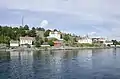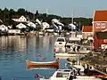 Previously, the village was a popular home for sea captains since it is only accessible by boat and it has no cars. The village is well-known for its scenic harbour and wooden houses. It is recognized as one of the best-preserved communities in Europe. Most of the buildings are now summer homes, but there are still about 75 permanent, year-round residents (in 2017). A popular destination in the summer months, it has more recently struggled to maintain a stable permanent population since it has no road connections to the mainland. The community has a sail-making factory, a few restaurants that are open during the tourist season, and a general store.[3][2]