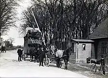 The road stretch today known as Lyngby Hovedgade was partly built over with houses in the 1780s. Ny Holte Kro (New Holte Inn) at the foot of Geel's hill in present-day Holte also opened in the 1780s[4] but apart from that the area along the northern part of Lyngby Kongevej saw little development but apart from the Kongevejen still passed through open countryside this far north. Even after the Nordbanen railway with stations at Holte and Birkerød in 1864, it lasted until the turn of the century before the area was built over with houses, some of which were replaced by apartment buildings in the 1930s.[5][6]