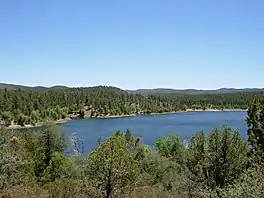 Lynx Lake, Arizona, is a 55-acre (220,000 m2) reservoir located within Prescott National Forest, approximately 5 miles (8.0 km) east of Prescott, Arizona, in the Bradshaw Mountains. The lake is located at 5,530 feet (1,690 m) elevation and is stocked for fishing. It is one of the most popular recreation areas in central Arizona. Mild weather, the cool ponderosa pine forest, trout fishing, boating, mountain hiking, horseback riding, archaeological sites, and bird watching attract visitors from throughout Arizona. The lake was formed in 1952, when a dam was put in Lynx Creek, 6 miles (9.7 km) below Walker, Arizona.