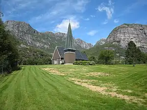 Lyse Chapel (Norwegian: Lyse kapell) is a parish church of the Church of Norway in the eastern part of the large Sandnes Municipality in Rogaland county, Norway. It is located in the very small village of Lysebotn, at the end of the Lysefjorden. It is one of the two churches for the Forsand parish which is part of the Sandnes prosti (deanery) in the Diocese of Stavanger. The brown, wooden church was built in a long church design in 1961 using designs by the architects Gustav Helland and Endre Årreberg. The church seats about 150 people.[1][2][3]