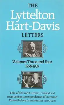 The Lyttelton/Hart-Davis Letters are a correspondence between two literary Englishmen, George Lyttelton (1883–1962) and Rupert Hart-Davis (1907–99), written between 1955 and Lyttelton's death, and published by Hart-Davis in six volumes between 1978 and 1984.