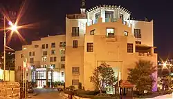 The hotel features an oriental-Islamic architecture style, where natural stones and hand-crafted woodwork is merged. Islamic architecture is noticed in the interior designs. The hotel includes 183 rooms and suites and 7 restaurants. The architect was Rasem Badran.[1]